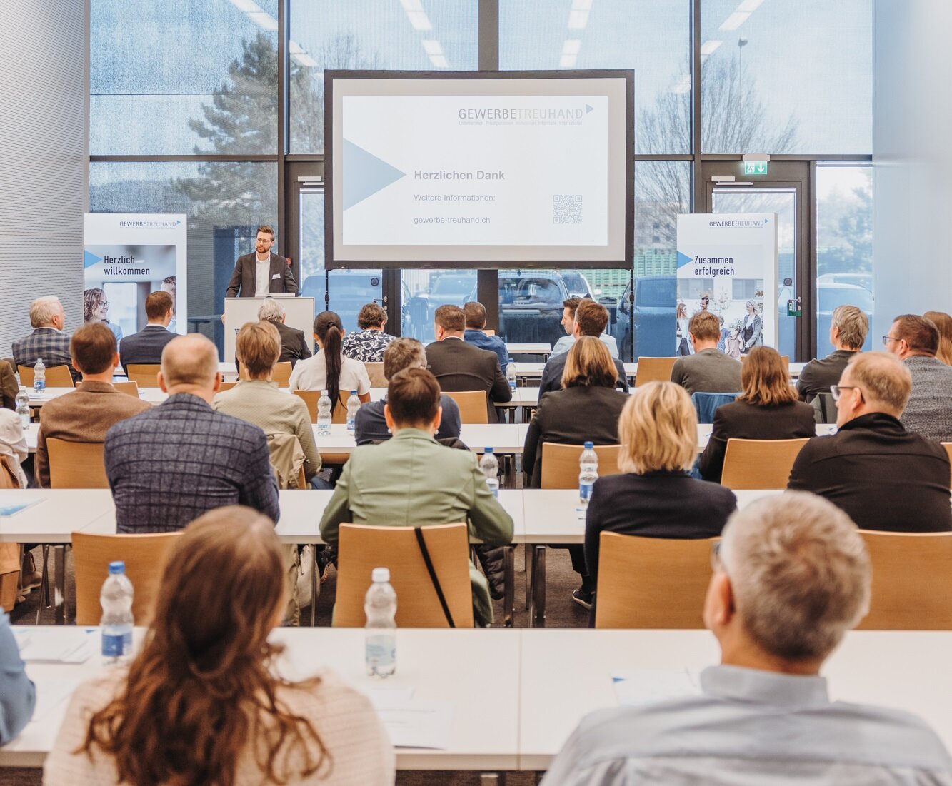 Simon Meierhans, Leiter Steuern der Gewerbe-Treuhand, zeigte in einem einstündigen Fachreferat auf, welche steuerlichen und finanziellen Auswirkungen die geplante Abschaffung des Eigenmietwerts mit sich bringt. Anhand konkreter Fallbeispiele beleuchtete er die Folgen sowohl für selbstgenutztes Wohneigentum als auch für Renditeliegenschaften und gab praxisnahe Einschätzungen für KMU und Eigentümer:innen.