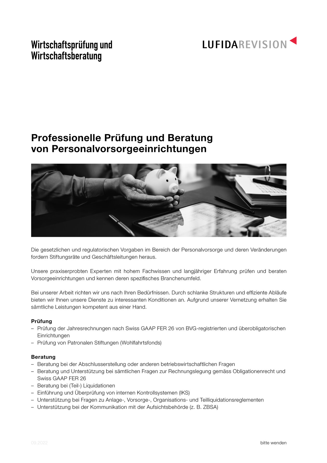 Professionelle Prüfung und Beratung von Personalvorsorgeeinrichtungen